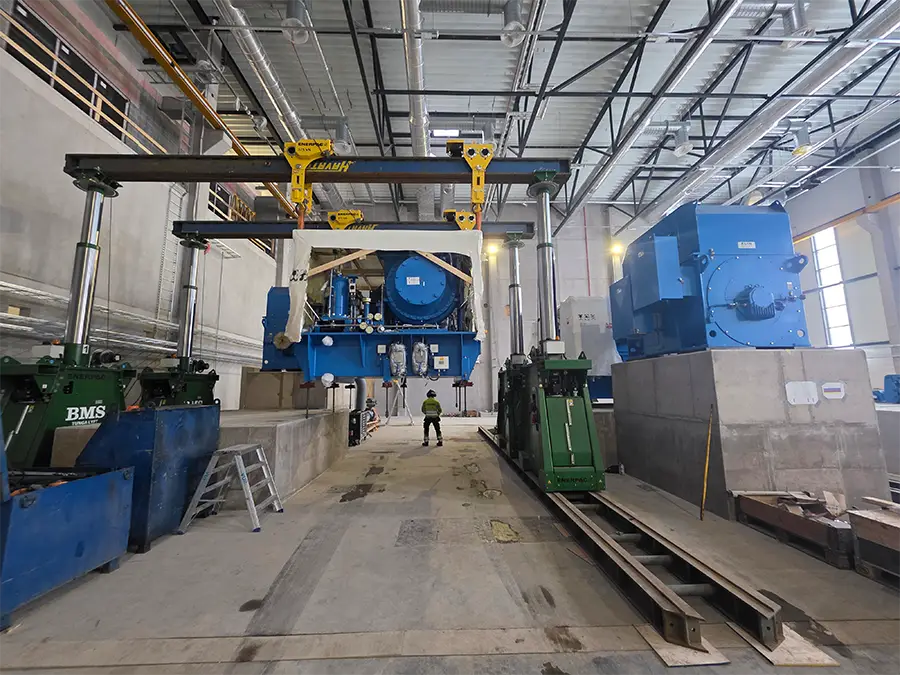 Der Modulbau wurde termingerecht positioniert und installiert. Anschliessend erfolgte die präzise Ausrichtung der Elektromotoren auf die Getriebeeinheiten. Parallel dazu führten wir umfangreiche Schwerlastmontagen durch. Nach dem exakten Einmessen und Festlegen der Koordinaten begann die Montage sowie das Anpassen der Rohrleitungen an die bestehenden Gegebenheiten.